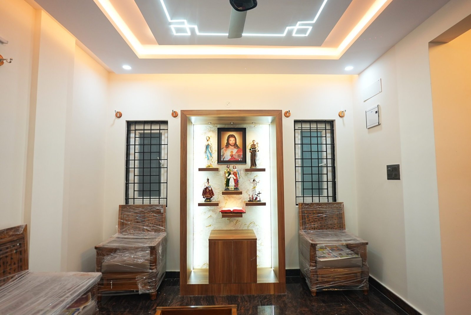 The interior design of this residence, located in Tirumalapura, Bengaluru, was carefully planned to create a warm and refined living environment. Designed for Mrs. Sangeetha Edwars, the home is developed on a 30 × 40 plot, offering a balanced layout that supports both comfort and everyday functionality.